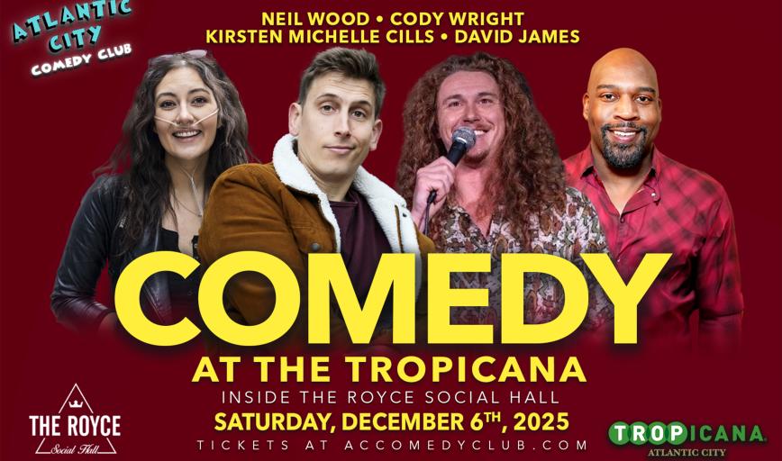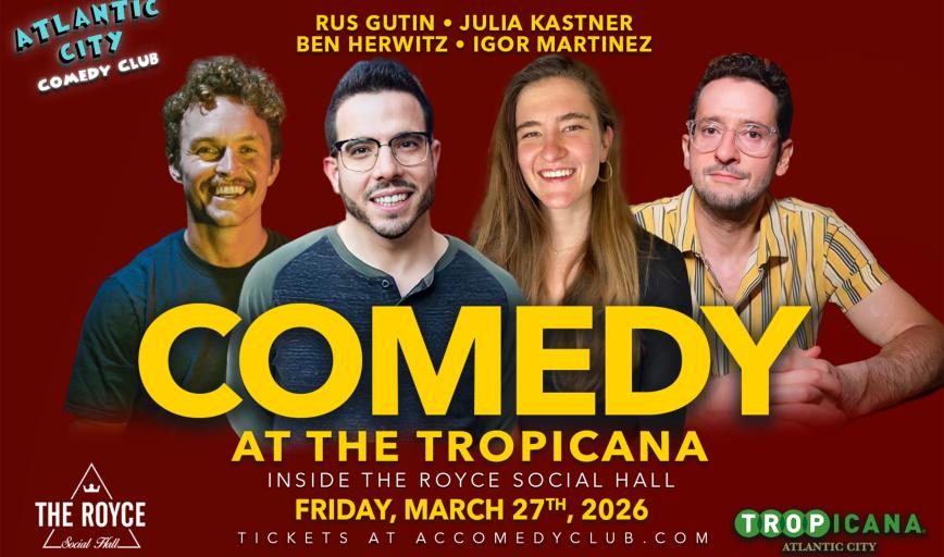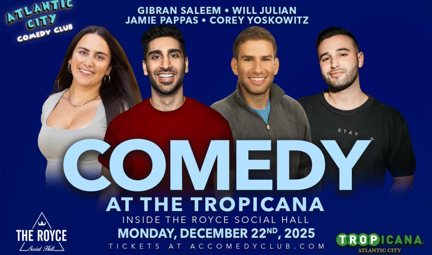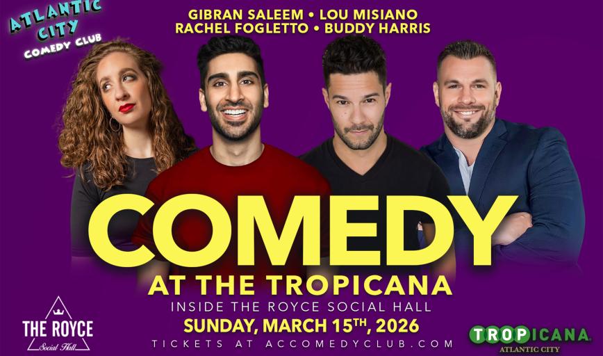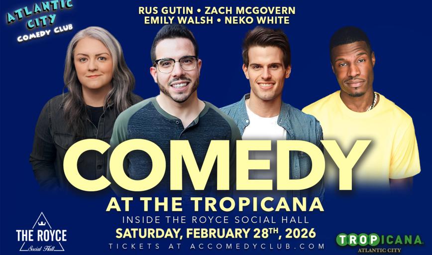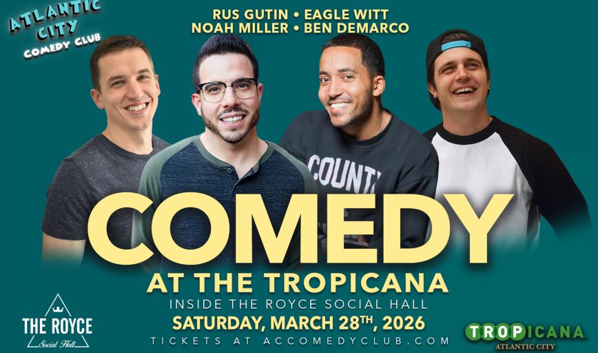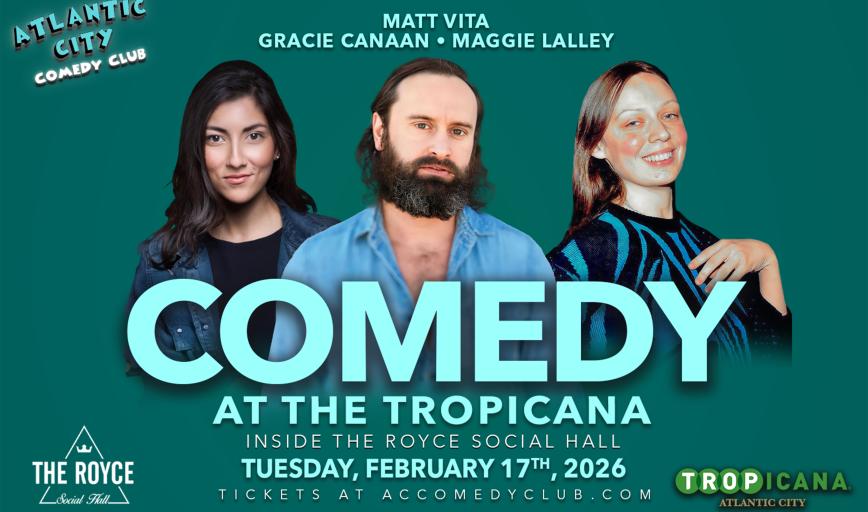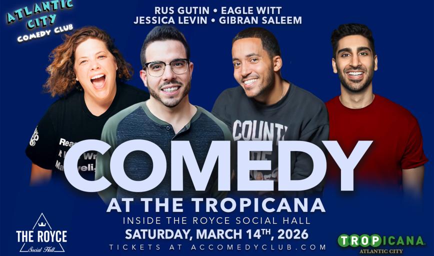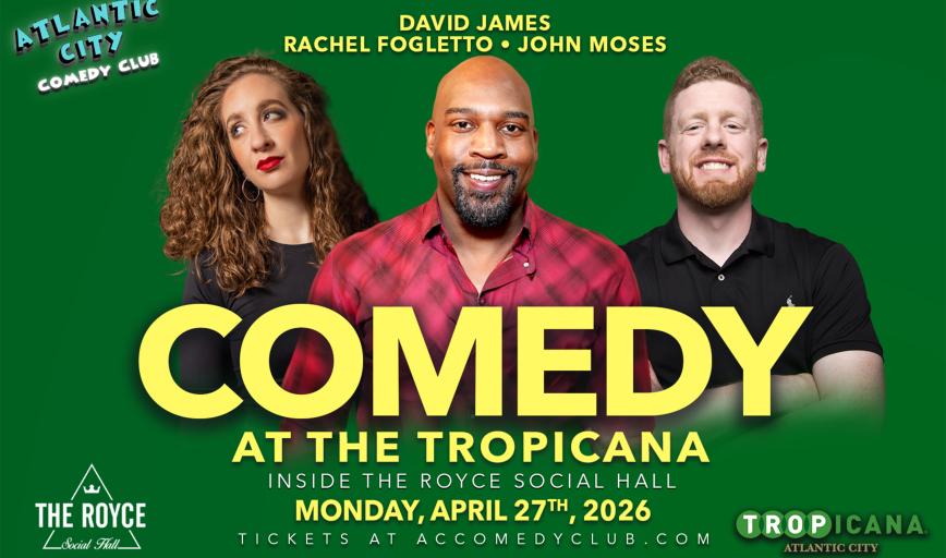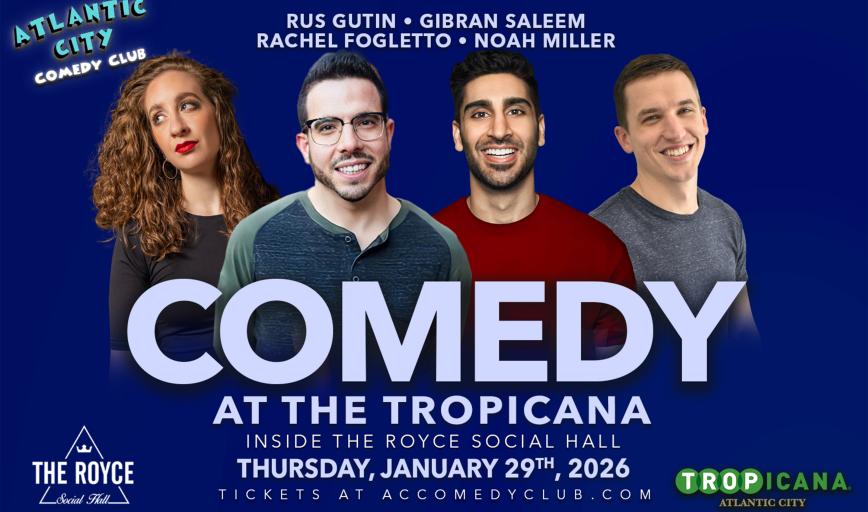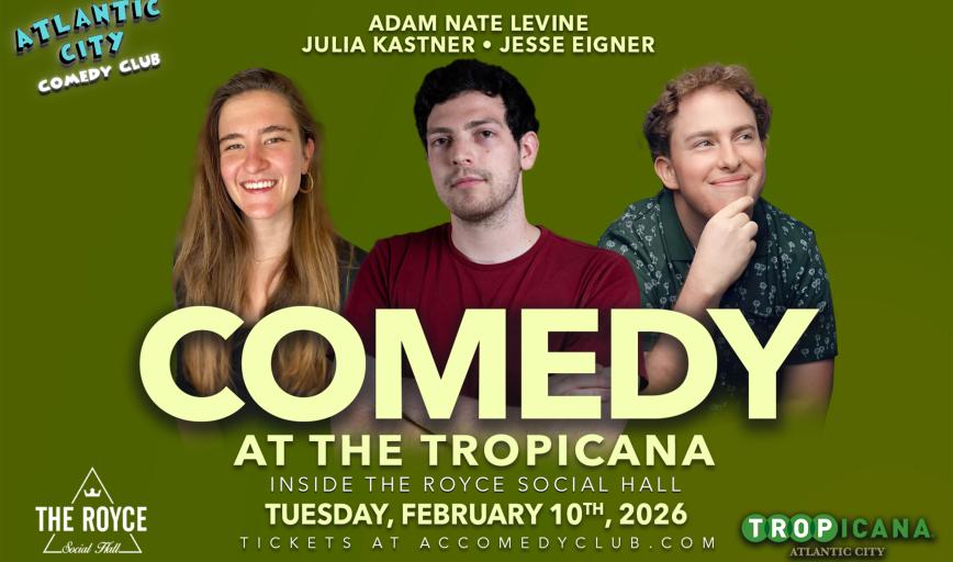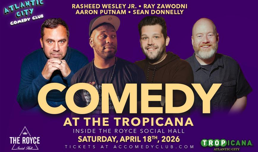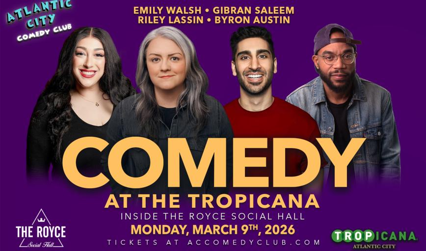 Atlantic City Comedy Club is now located at the Tropicana inside the Royce Social Hall!We bring you the best show in town every weekend. Catch the funniest comedians from New Jersey, Philadelphia, and New York right here in Atlantic City! Your favorite comedians from Late Night TV, movies, popular podcasts, and radio personalities headline our showroom each and every Wednesday, Thursday, Friday, Saturday, and Sunday nights.