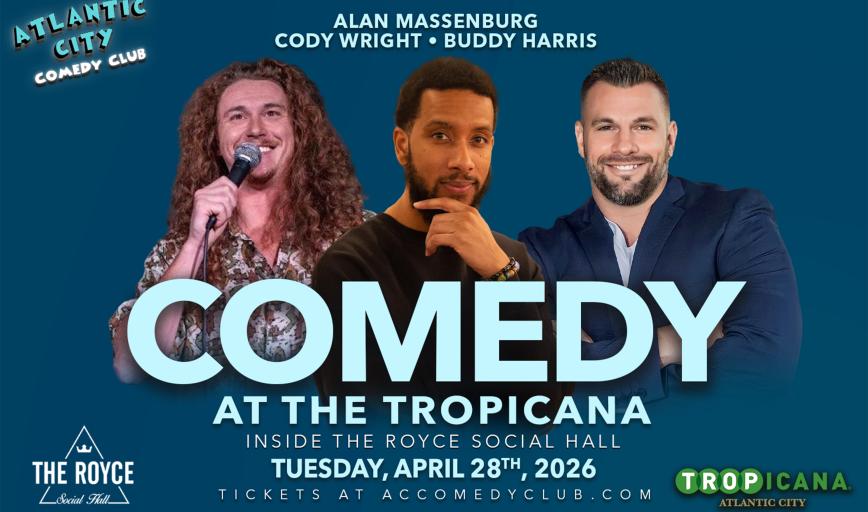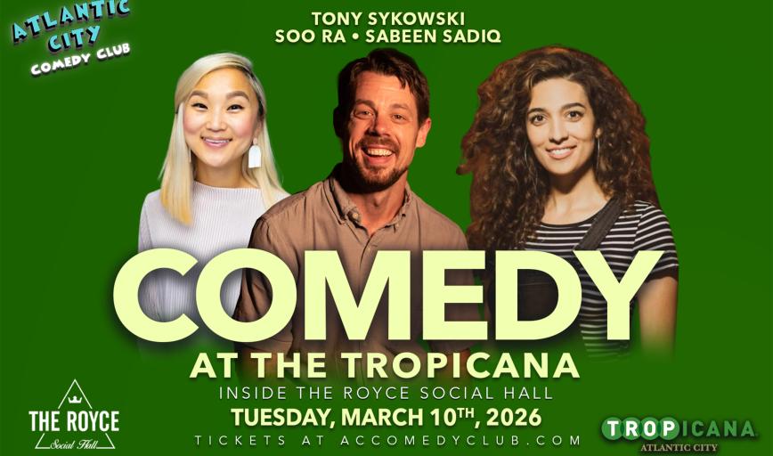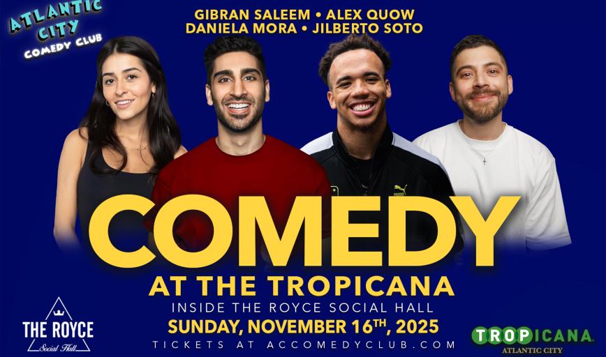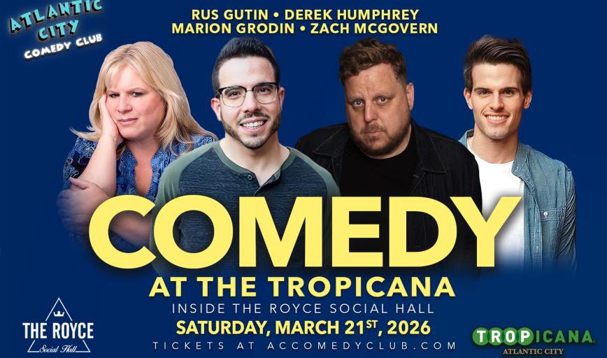 Atlantic City Comedy Club is now located at The Tropicana inside the Royce Social Hall!We bring you the best show in town every weekday. Catch the funniest comedians from New Jersey, Philadelphia, and New York right here in Atlantic City! Your favorite comedians from late-night TV, popular podcasts, and radio personalities headline our showroom each and every Monday, Wednesday, Thursday, and Sunday night.