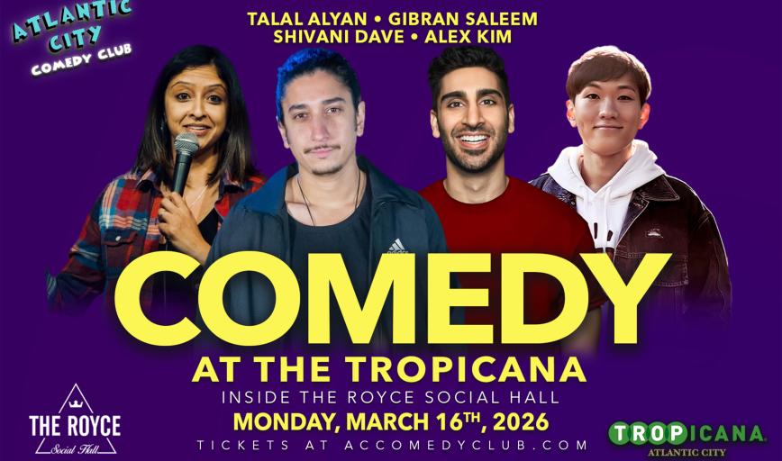 Atlantic City Comedy Club is now located at the Tropicana inside the Royce Social Hall!We bring you the best show in town every weekend. Catch the funniest comedians from New Jersey, Philadelphia, and New York right here in Atlantic City! Your favorite comedians from Late Night TV, movies, popular podcasts, and radio personalities headline our showroom each and every Wednesday, Thursday, Friday, Saturday, and Sunday night.