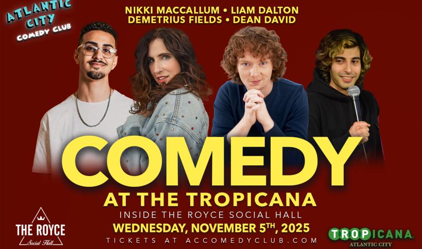 Atlantic City Comedy Club is now located at the Tropicana inside the Royce Social Hall!We bring you the best show in town every weekend. Catch the funniest comedians from New Jersey, Philadelphia, and New York right here in Atlantic City! Your favorite comedians from Late Night TV, movies, popular podcasts, and radio personalities headline our showroom each and every Wednesday, Thursday, Friday, Saturday, and Sunday night.