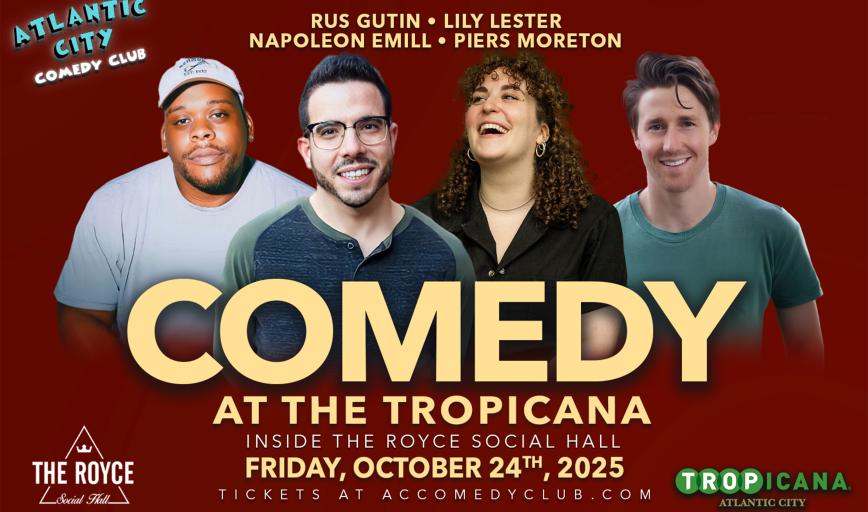 Atlantic City Comedy Club is now located at the Tropicana inside the Royce Social Hall!We bring you the best show in town every weekend. Catch the funniest comedians from New Jersey, Philadelphia, and New York right here in Atlantic City! Your favorite comedians from Late Night TV, movies, popular podcasts, and radio personalities headline our showroom each and every Wednesday, Thursday, Friday, Saturday, and Sunday night.