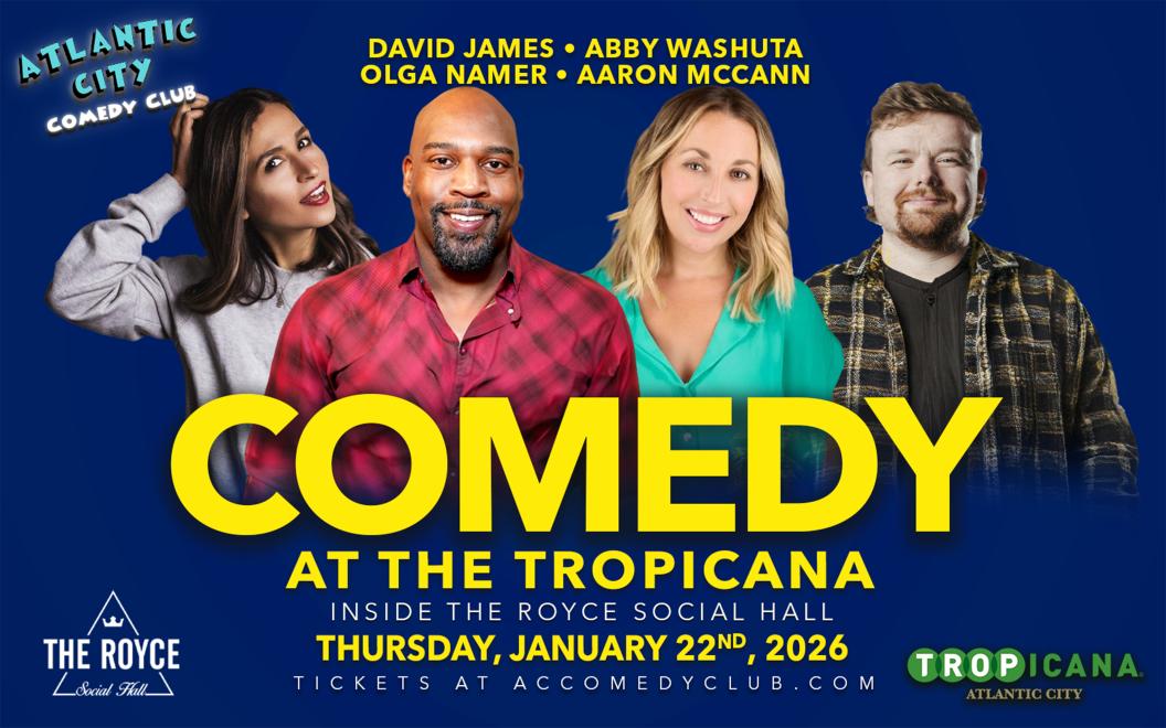 Atlantic City Comedy Club is now located at the Tropicana inside the Royce Social Hall!