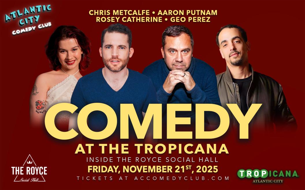 Atlantic City Comedy Club is now located in at the Tropicana inside the Royce Social Hall!