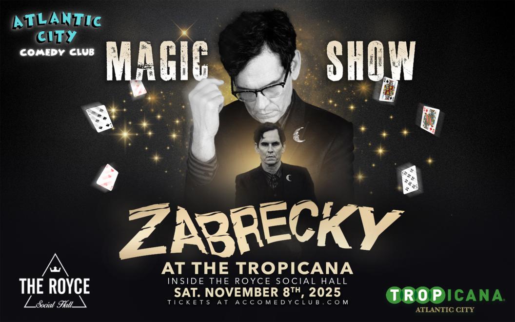 The show features highlights from his six-time award-winning Magic Castle act, comedy, song & dance, audience interaction, absurd parapsychology, and much more. Lauded by critics and audiences alike, in 2022 The Chicago Tribune raved, “Zabrecky is very funny, assuming you like your humor cynical and caustic, akin to a horror show of a bygone age. Zabrecky’s notable distinctive brand of comedy and magic is one thing, but his improvisational skills and his evident love of pushing things right to the edge and then maybe a little further, are another.”