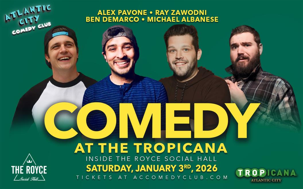 Atlantic City Comedy Club is now located at the Tropicana inside the Royce Social Hall!