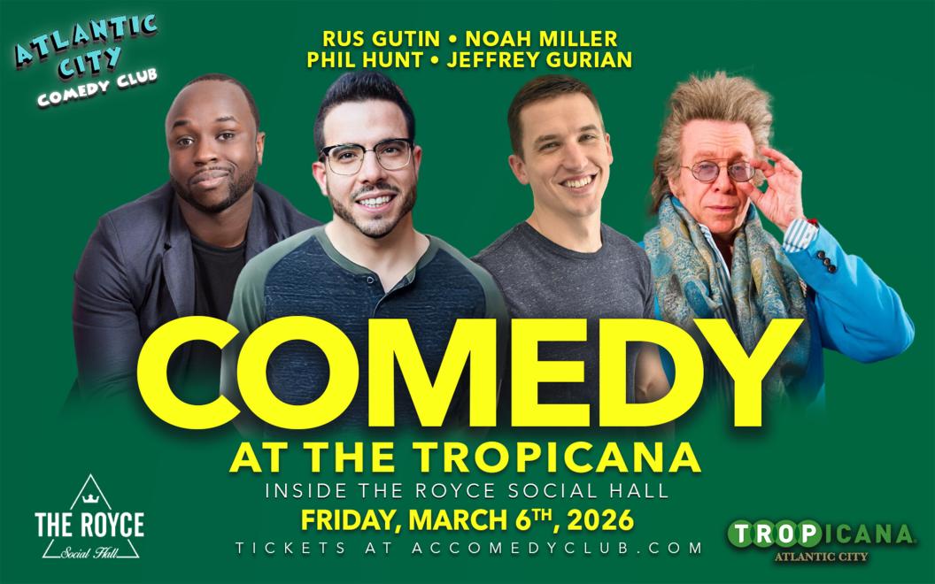 Atlantic City Comedy Club is now located in at the Tropicana inside the Royce Social Hall!